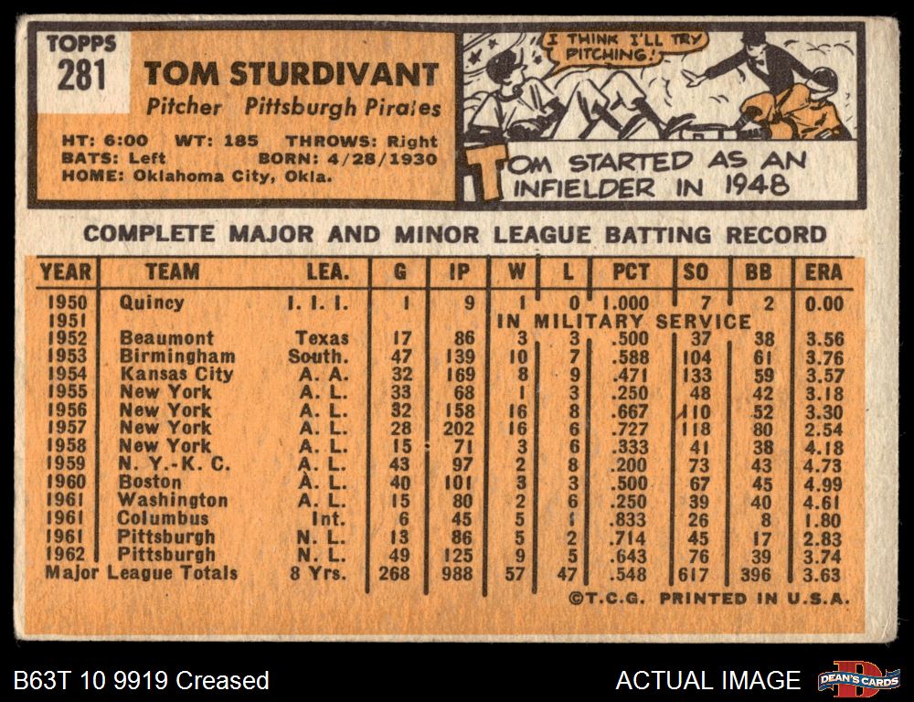 1963 Topps #281 Tom Sturdivant 2 - GOOD