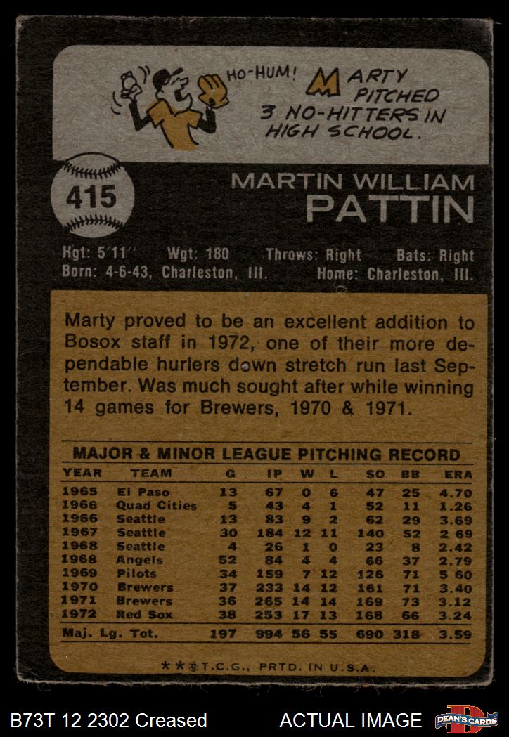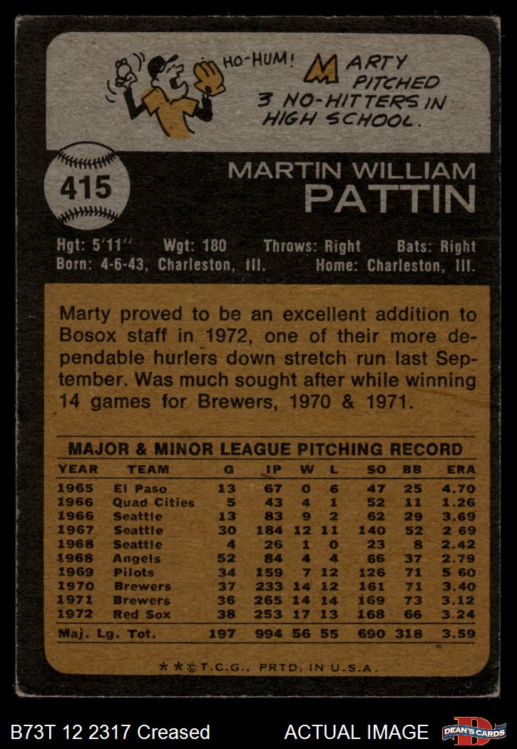 1973 Topps #415 Marty Pattin 1.5 - FAIR