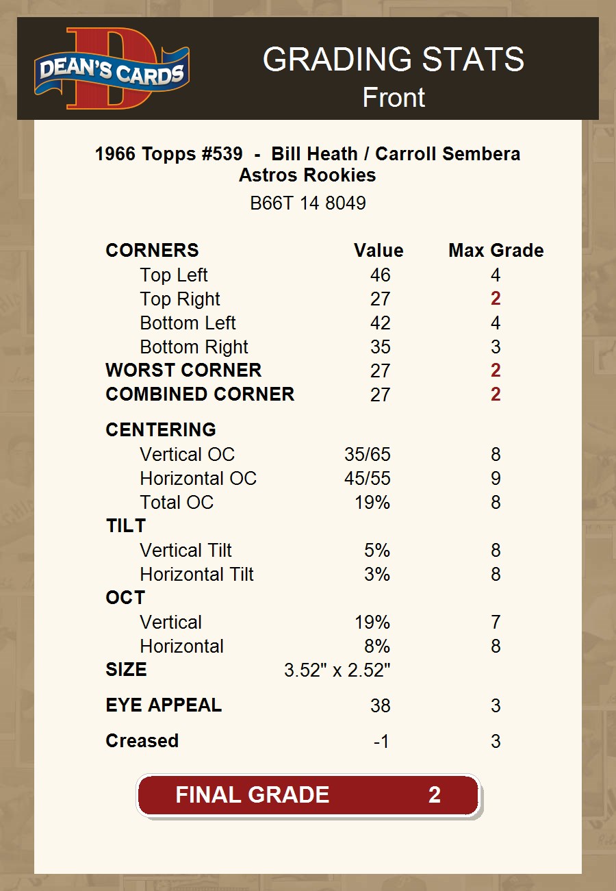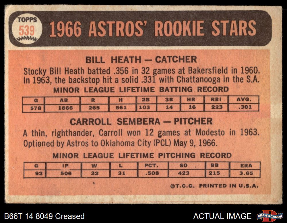1966 Topps #539 - Bill Heath / Carroll Sembera Astros Rookies 2 - GOOD