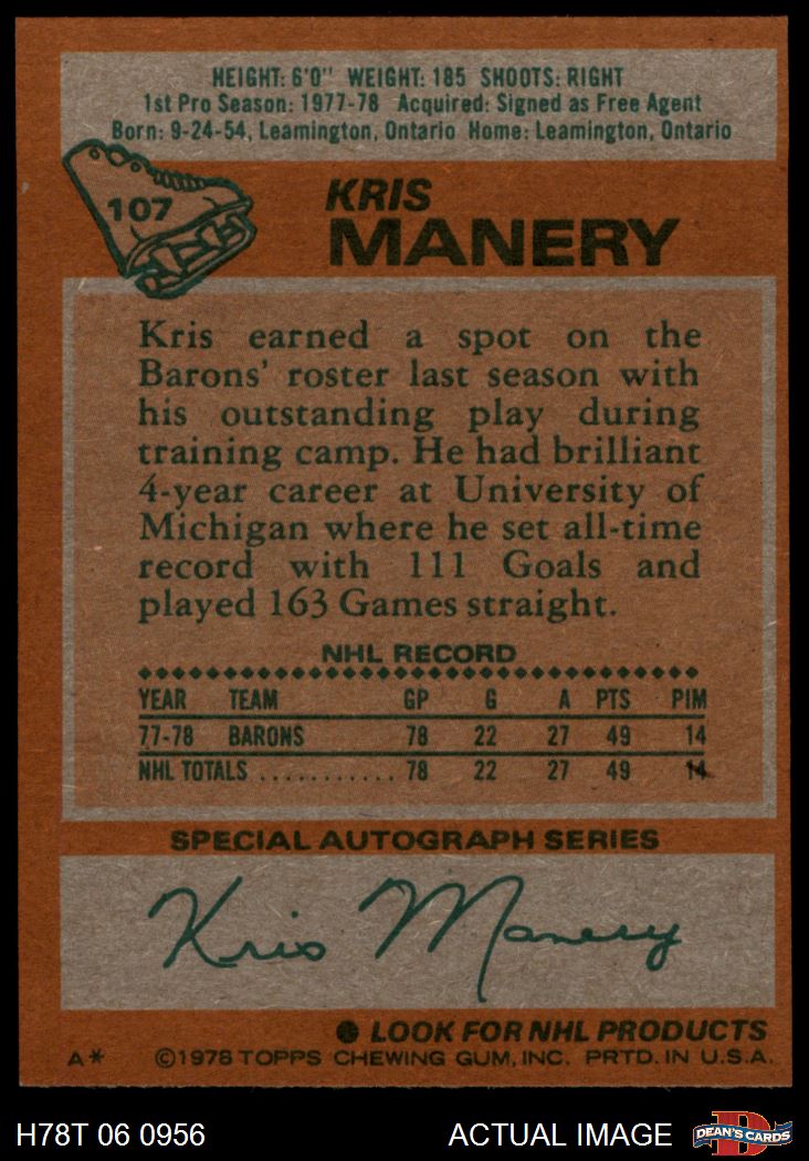 1978 Topps #107 Kris Manery 8 - NM/MT