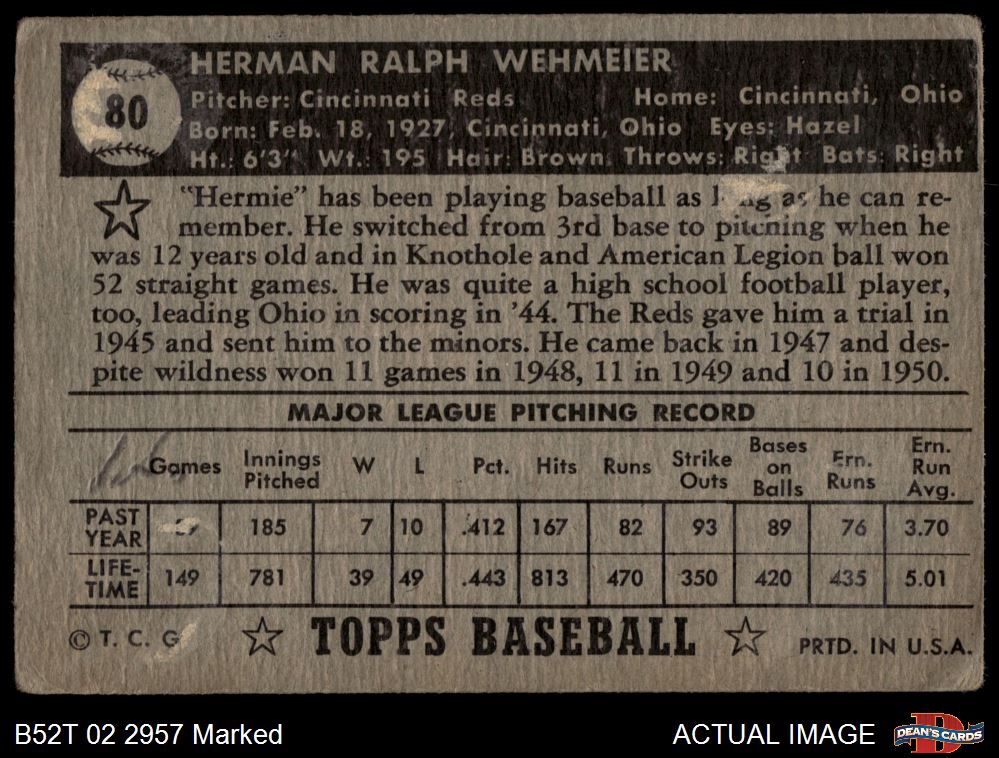 1952 Topps #80 Herm Wehmeier 1 - POOR