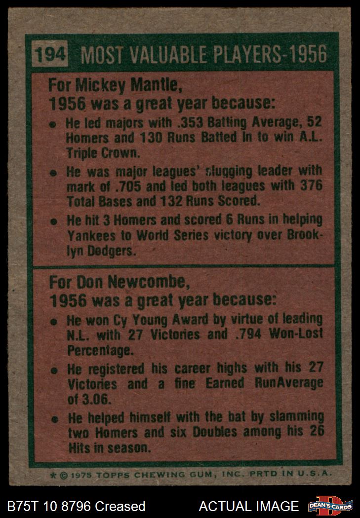1975 Topps #194 - Mickey Mantle / Don Newcombe 1956 MVPs 2 - GOOD
