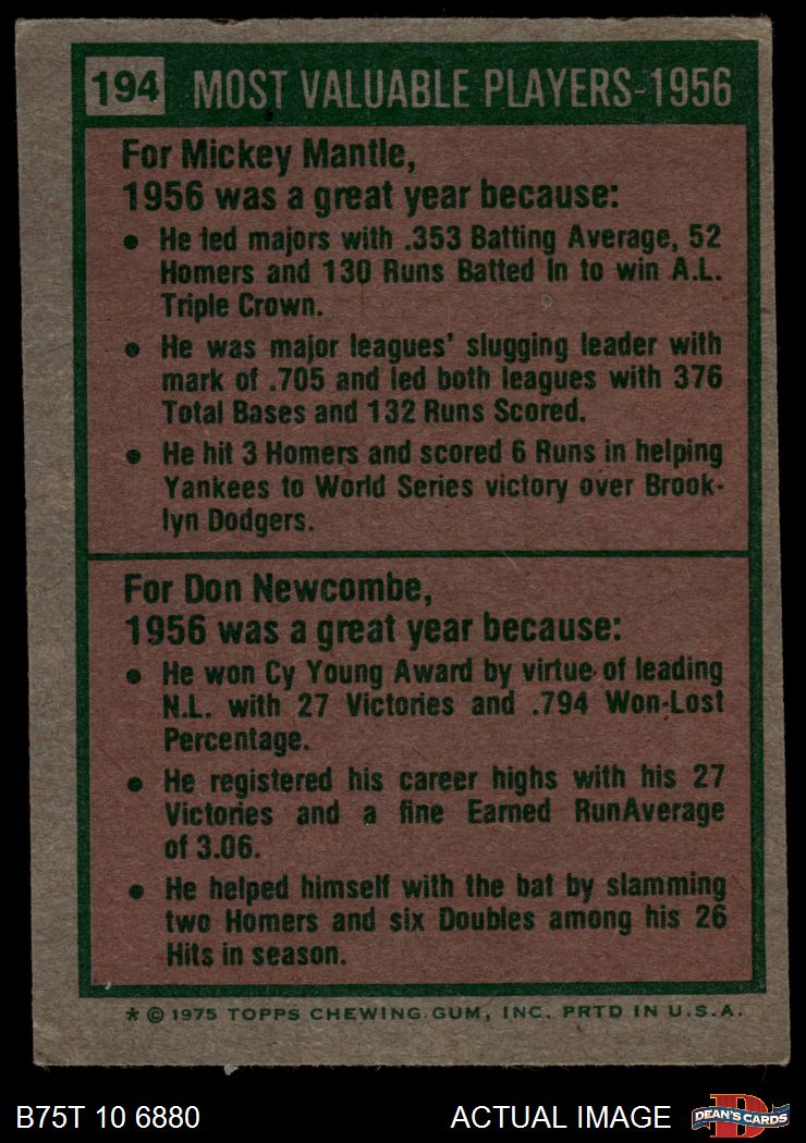 1975 1975 #194 - Mickey Mantle / Don Newcombe 1956 MVPs 4 - VG/EX