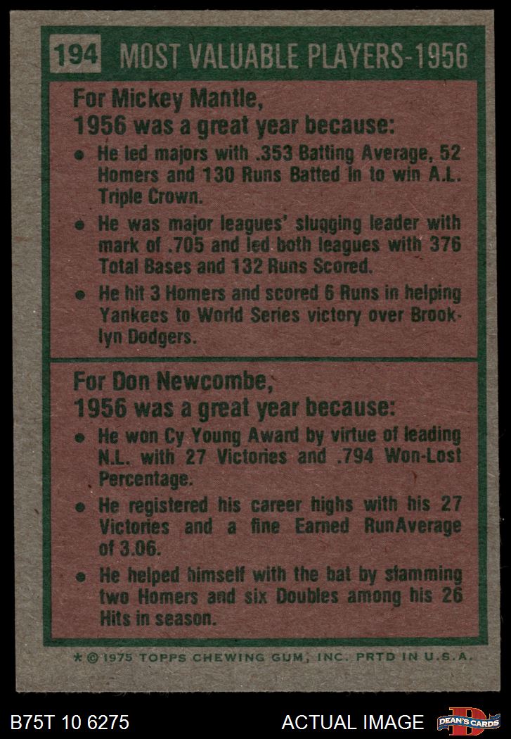 1975 1975 #194 - Mickey Mantle / Don Newcombe 1956 MVPs 5 - EX