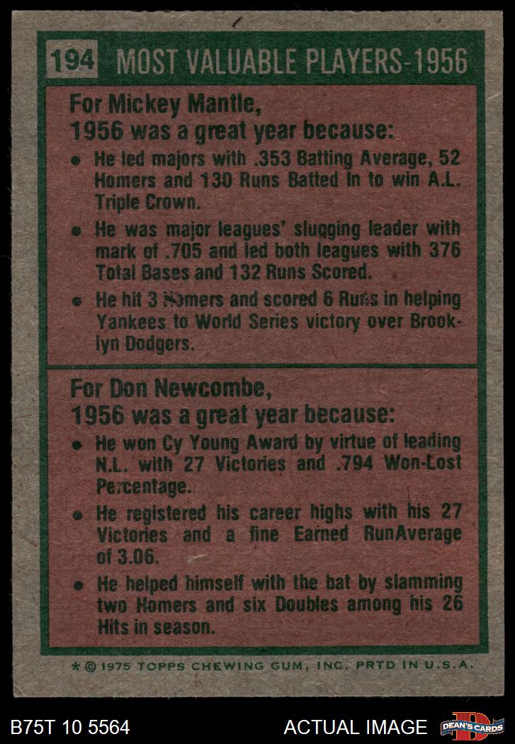 1975 1975 #194 - Mickey Mantle / Don Newcombe 1956 MVPs 6 - EX/MT