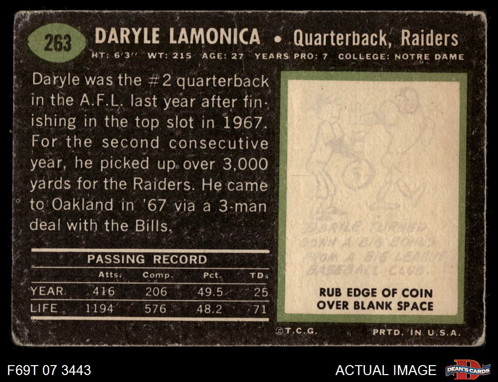 1969 Topps #263 Daryle Lamonica AUTHENTIC