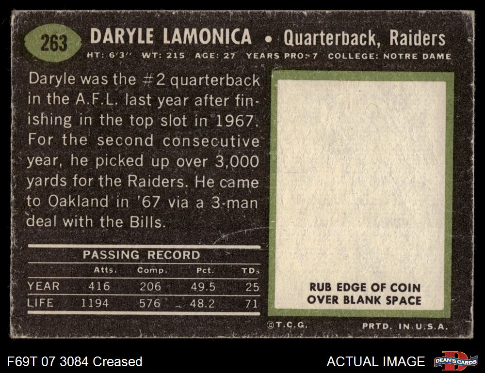 1969 Topps #263 Daryle Lamonica Front Thumbnail
