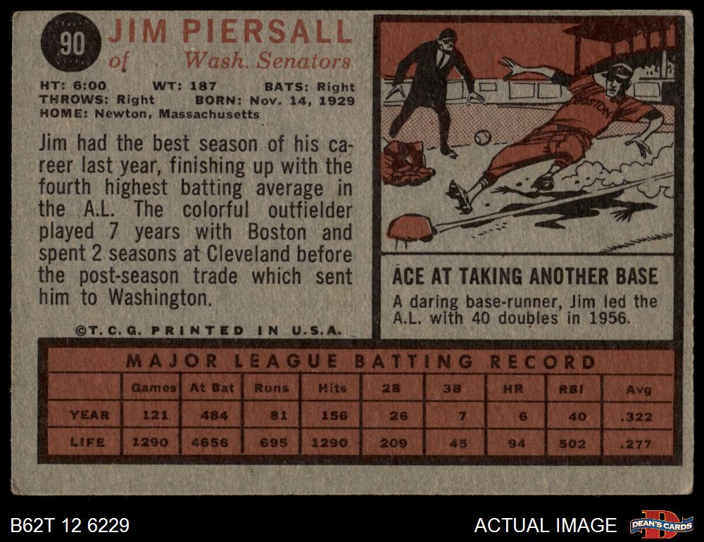 1962 Topps #90 Jimmy Piersall 1 - POOR