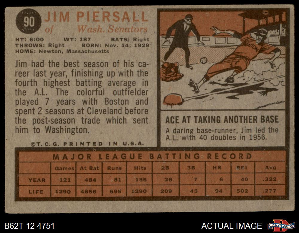 1962 Topps #90 Jimmy Piersall Front Thumbnail