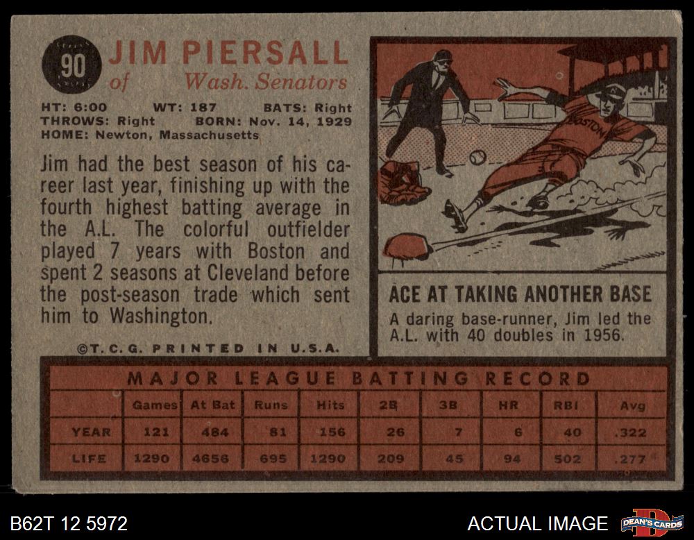 1962 Topps #90 Jimmy Piersall 2 - GOOD
