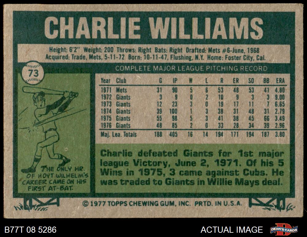 1977 Topps #73 Charlie Williams 3 - VG