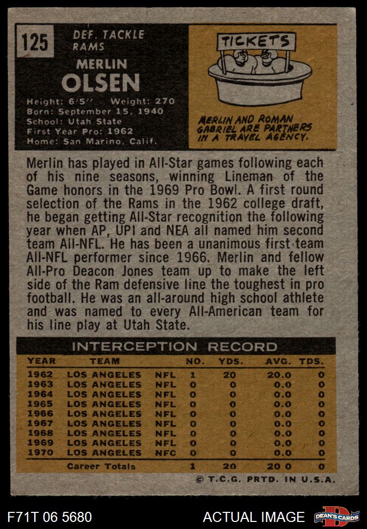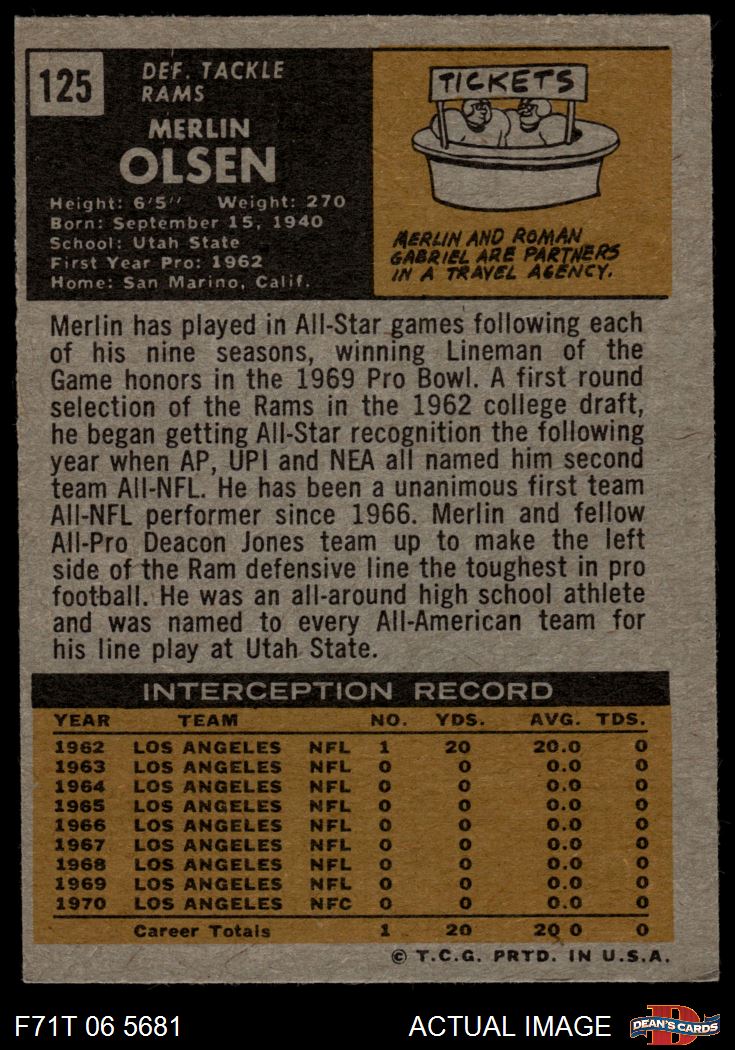 1971 Topps #125 Merlin Olsen 6 - EX/MT