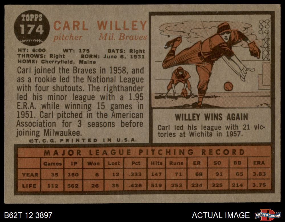 1962 Topps #174 xCAP Carl Willey Front Thumbnail
