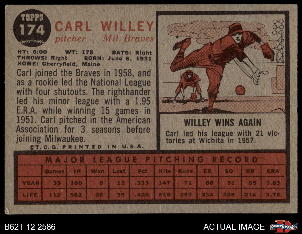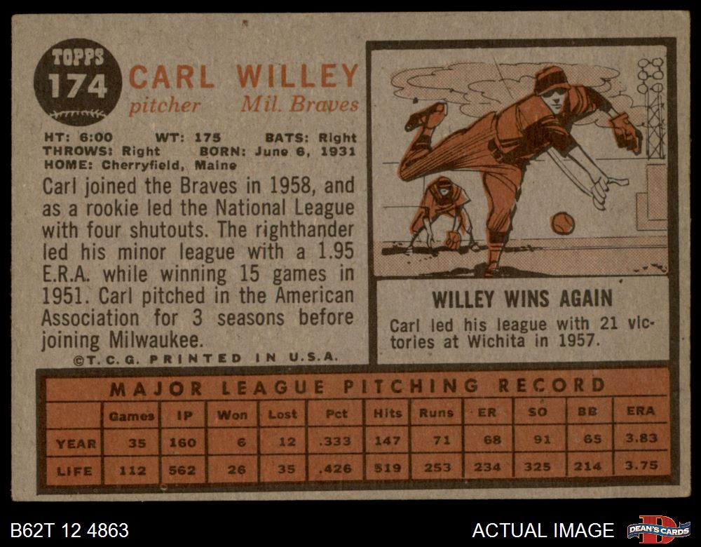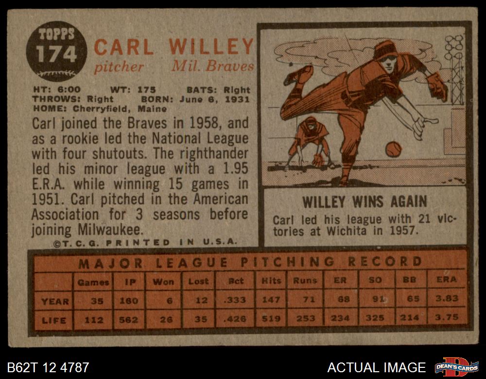 1962 Topps #174 xCAP Carl Willey 4 - VG/EX
