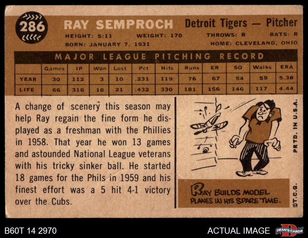 1960 Topps #286 Ray Semproch