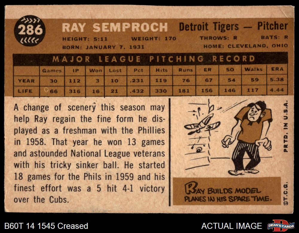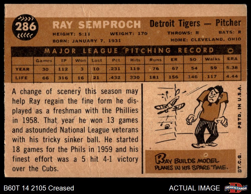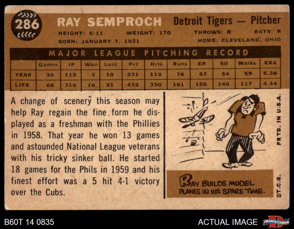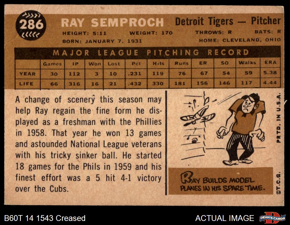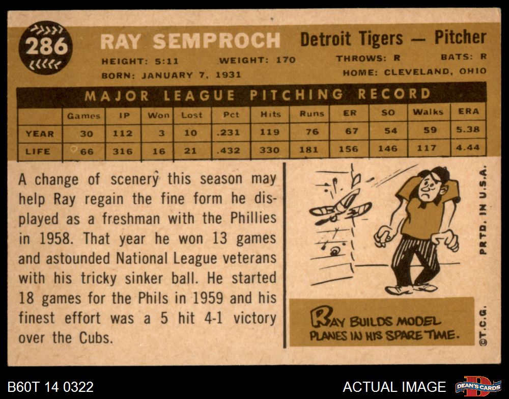 1960 Topps #286 Ray Semproch 2 - GOOD