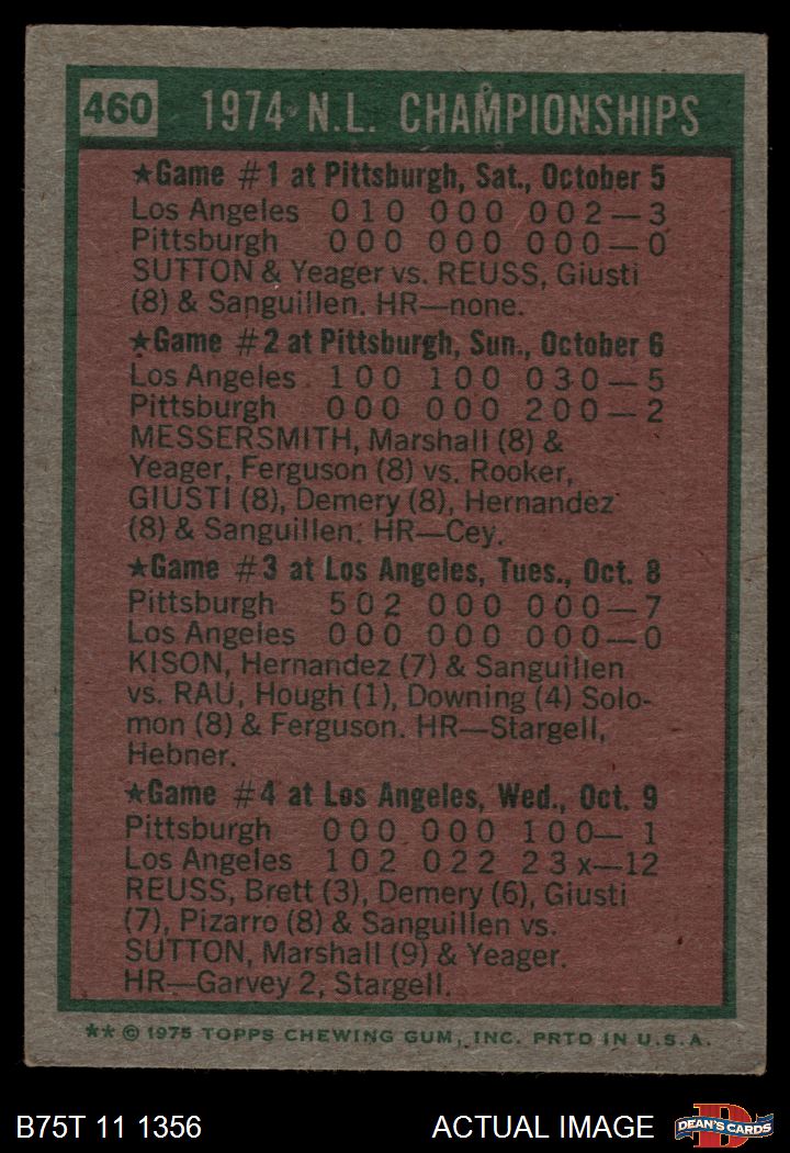 1975 Topps #460 - Steve Garvey / Frank Taveras 1974 NL Championships 2 - GOOD