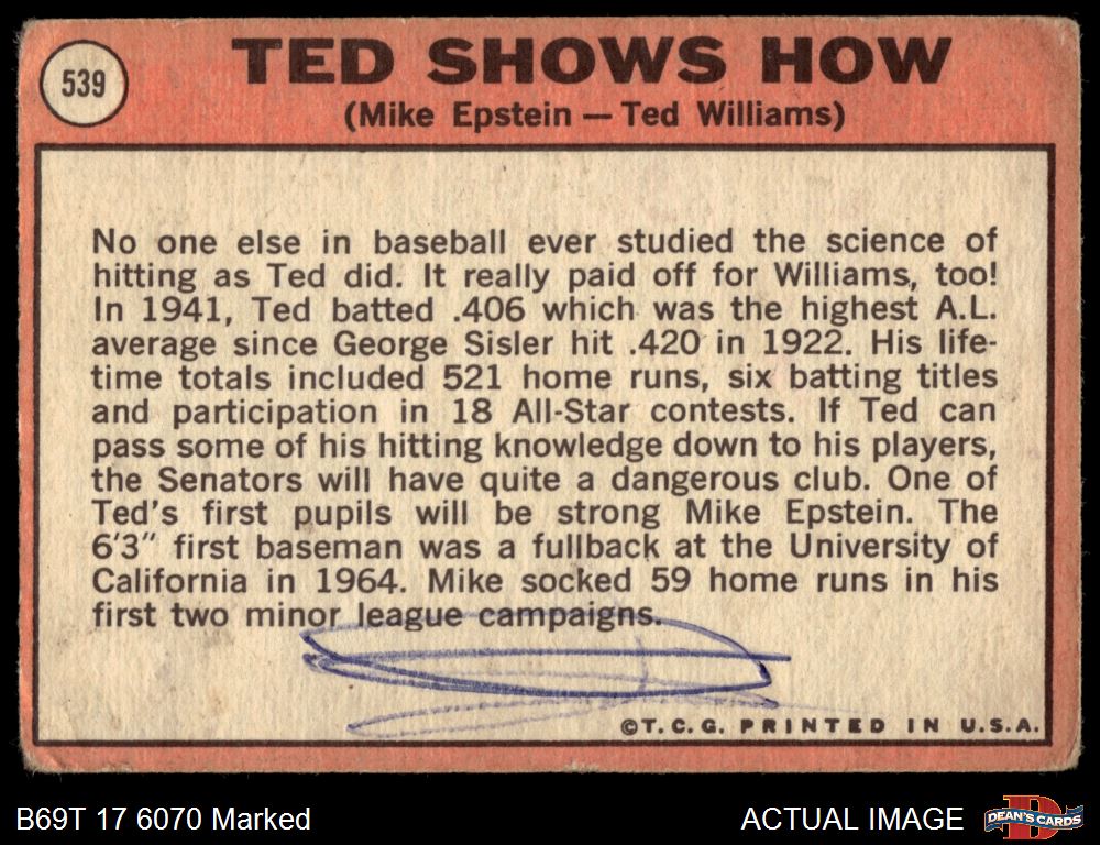 1969 Topps #539 - Ted Williams / Mike Epstein Ted Shows How 1 - POOR