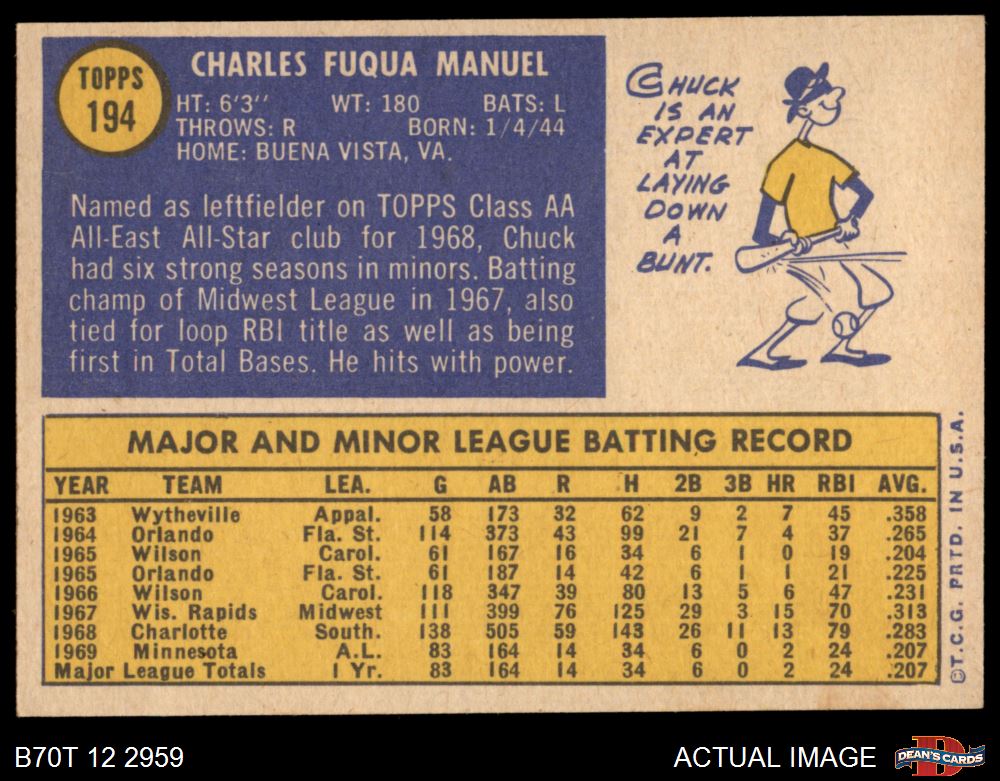 1970 Topps #194 Charlie Manuel 5 - EX