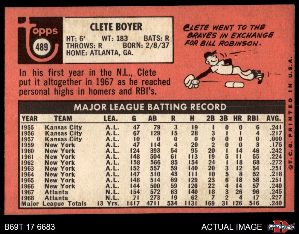 1969 Topps #489 Clete Boyer 4 - VG/EX