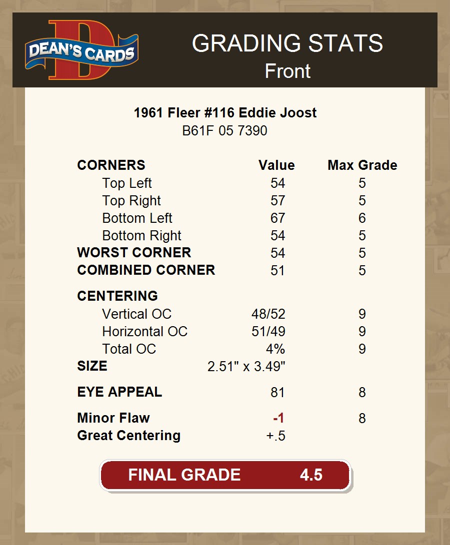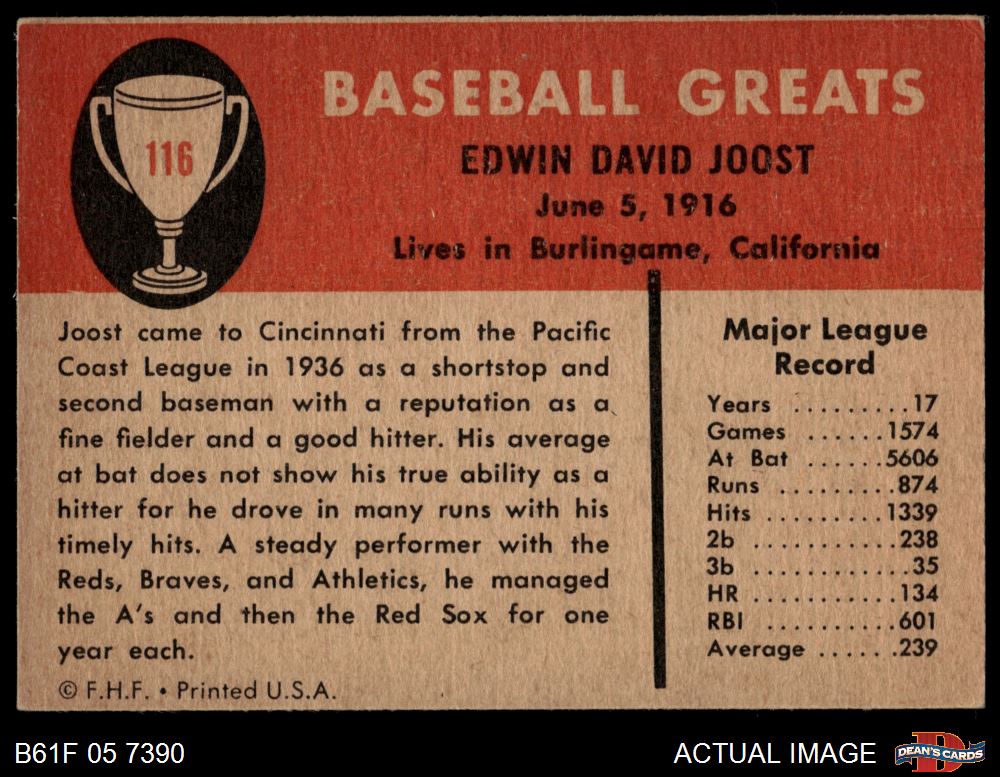 1961 Fleer #116 Eddie Joost 4.5 - VG/EX+