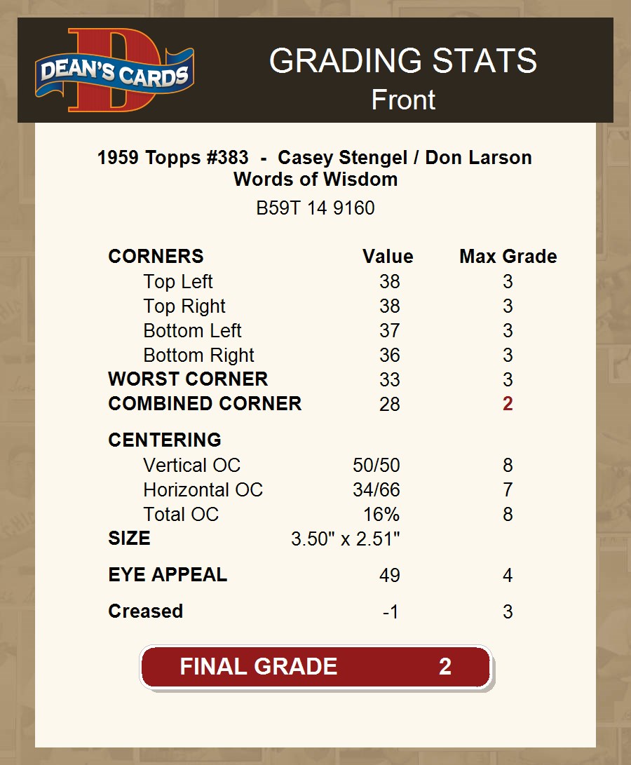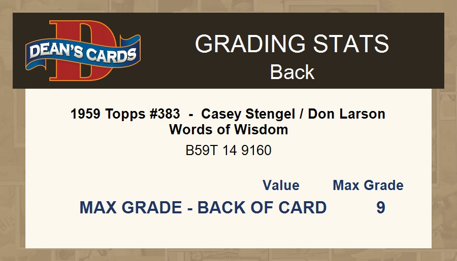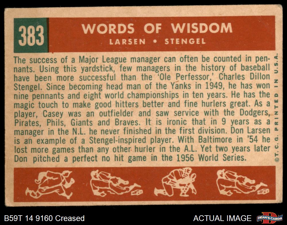 1959 Topps #383 - Casey Stengel / Don Larson Words of Wisdom 2 - GOOD