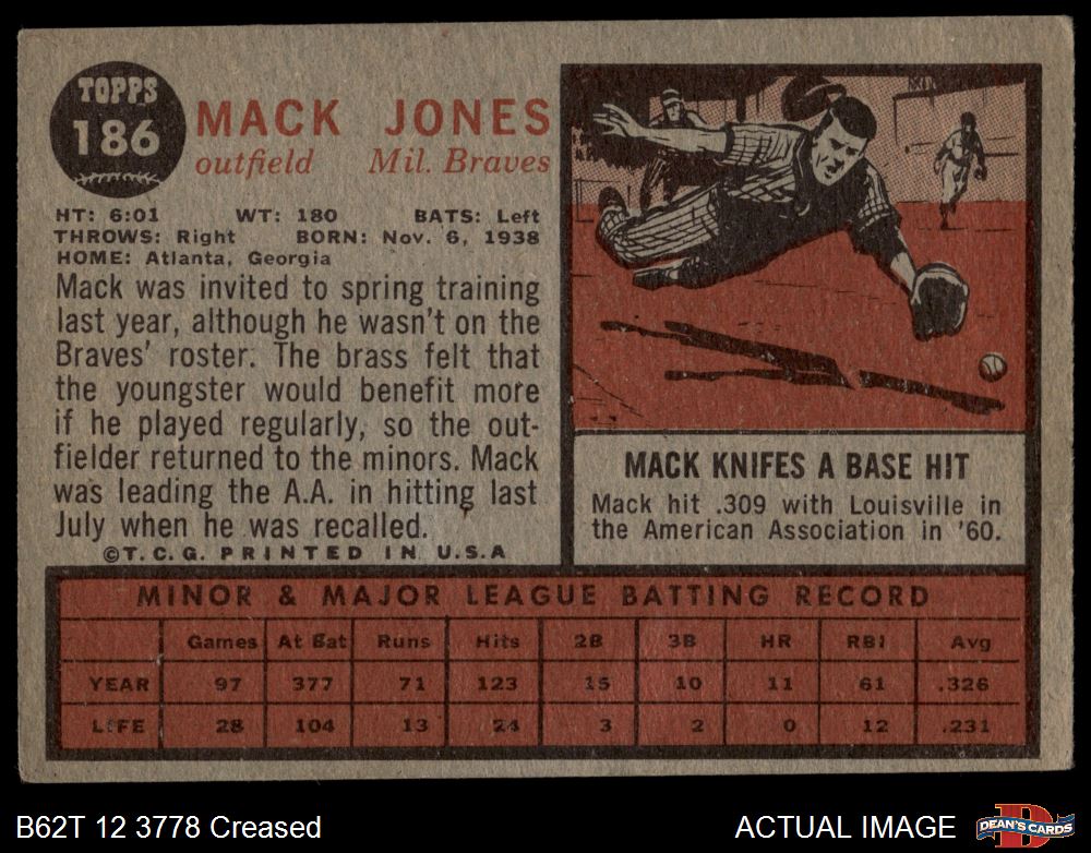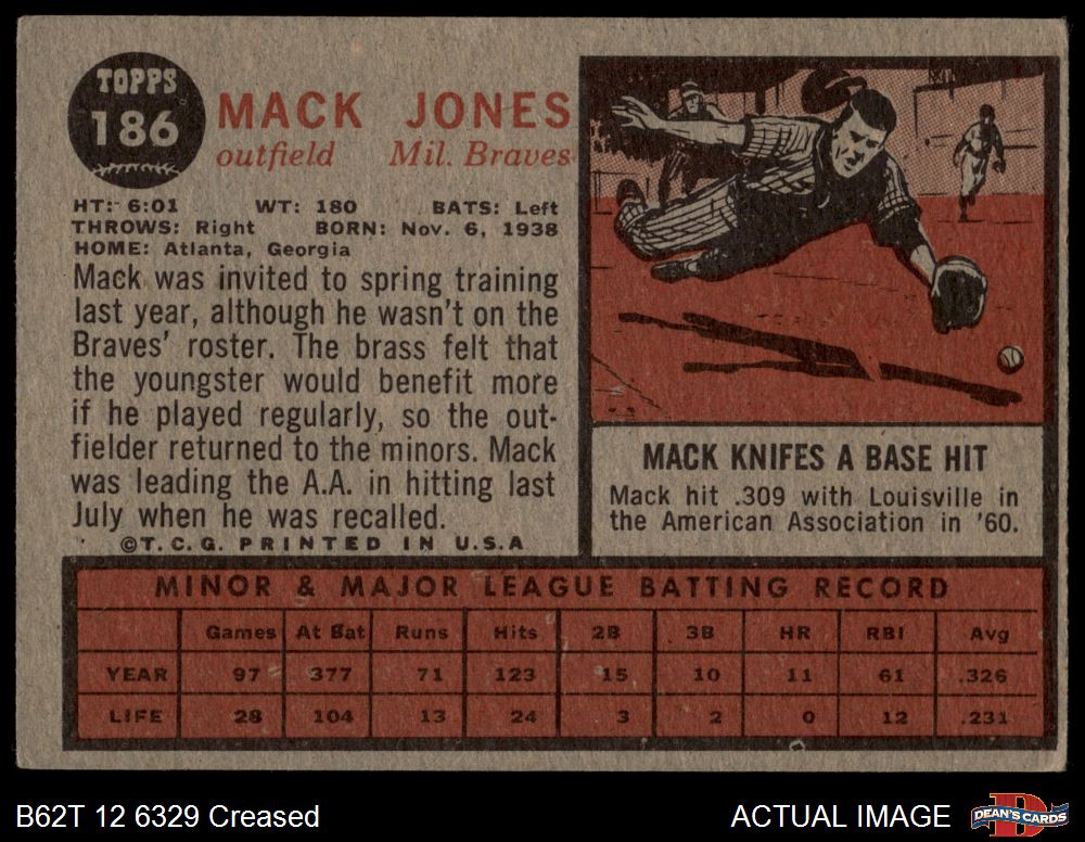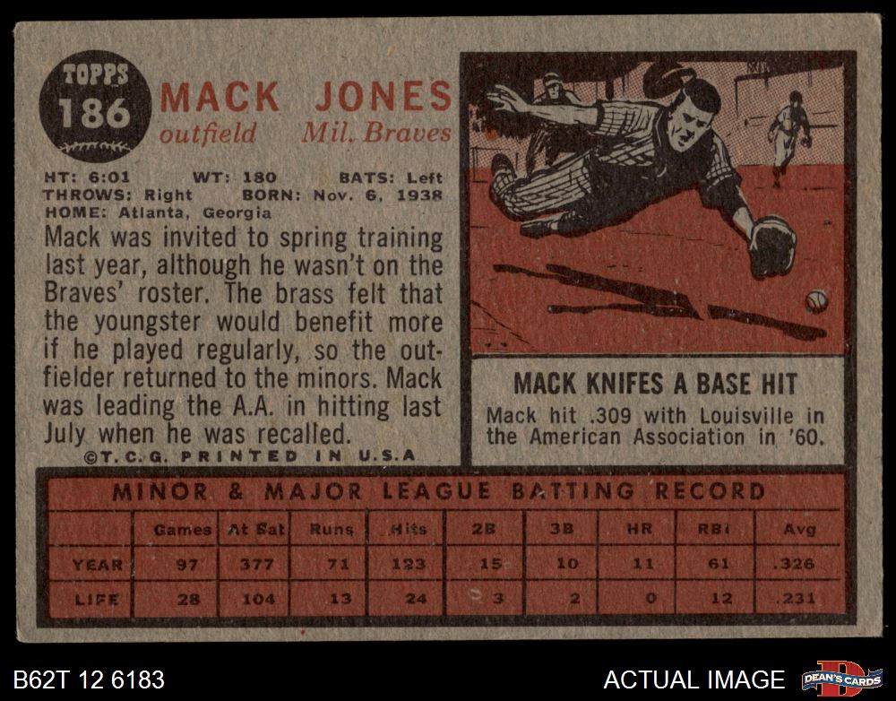 1962 Topps #186 NRM Mack Jones 1.5 - FAIR