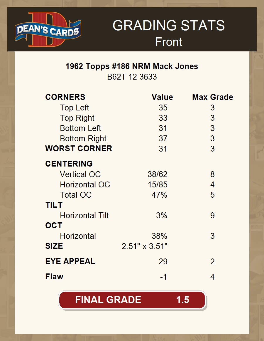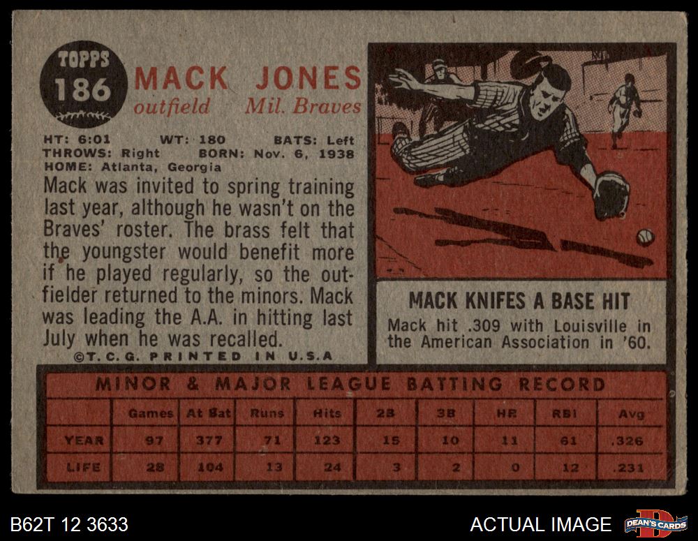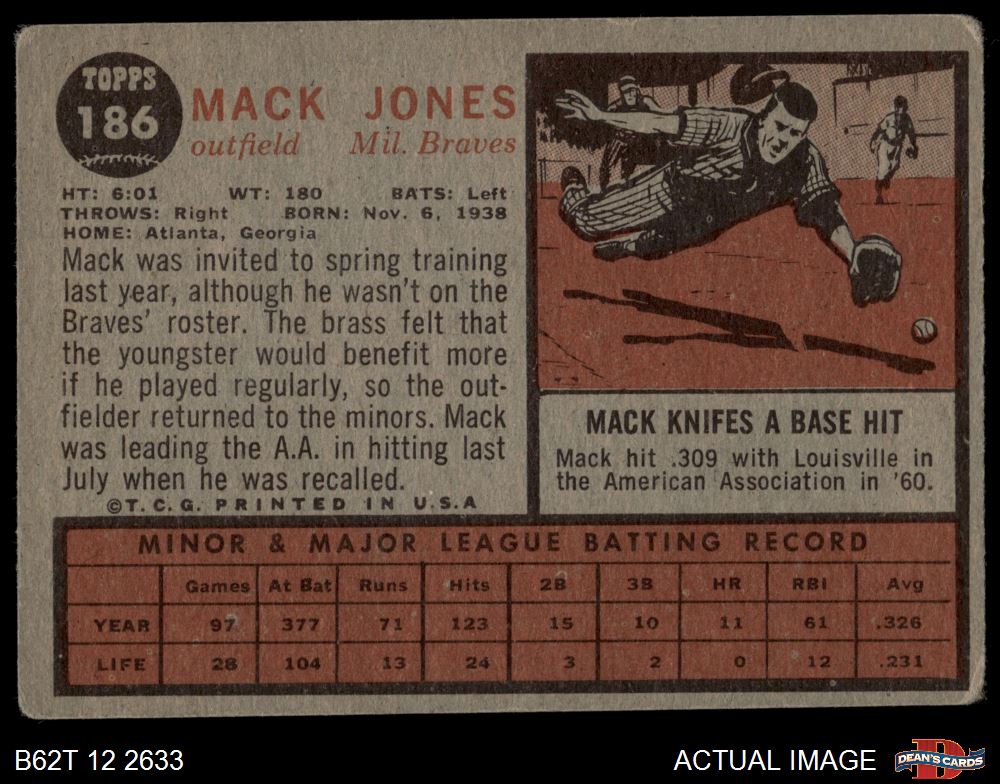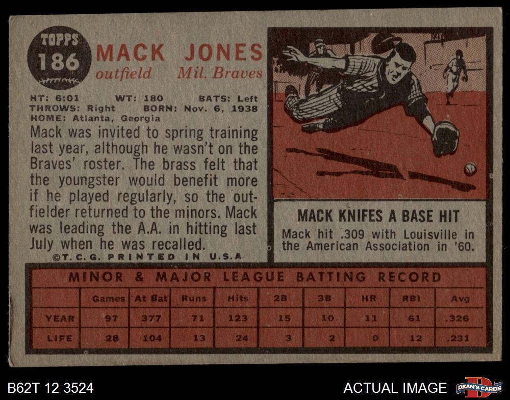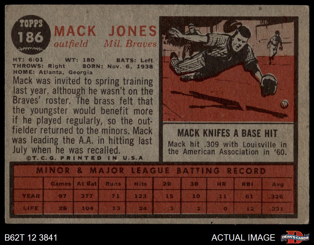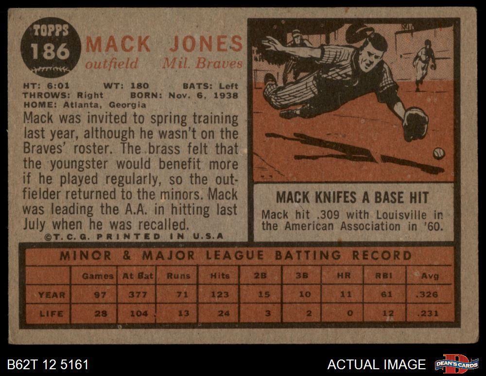 1962 Topps #186 NRM Mack Jones