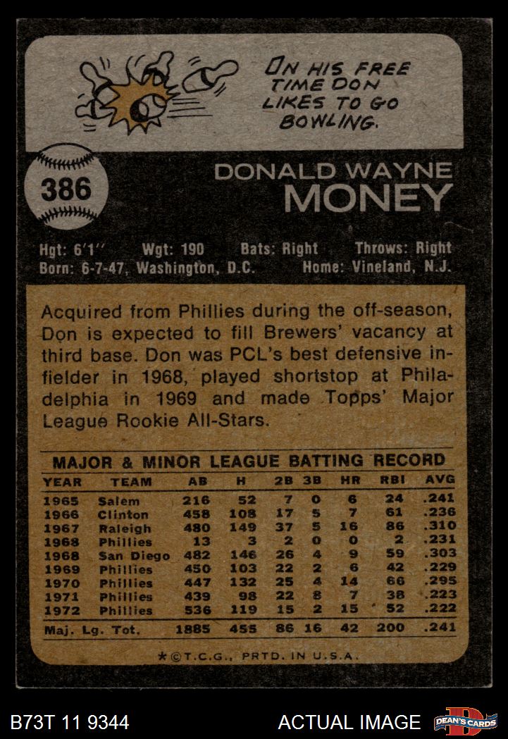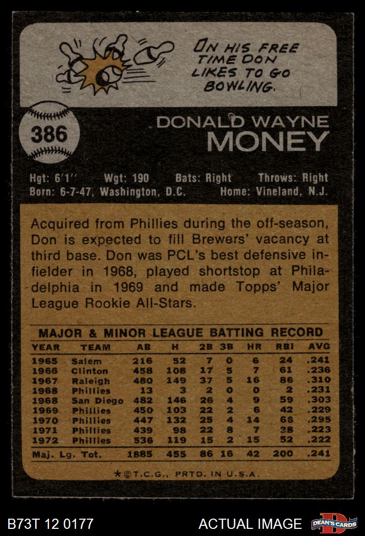 1973 Topps #386 Don Money 5 - EX