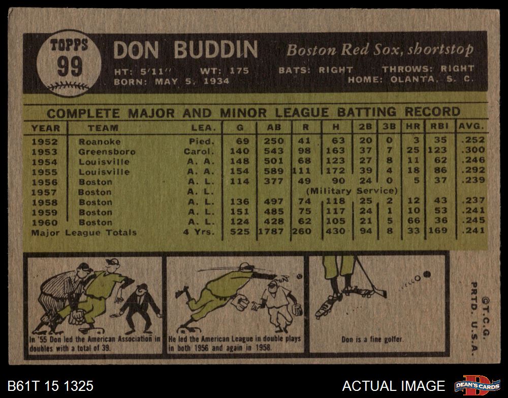 1961 Topps #99 Incorrectly lists HRs in 1959 as 66 Don Buddin 4 - VG/EX