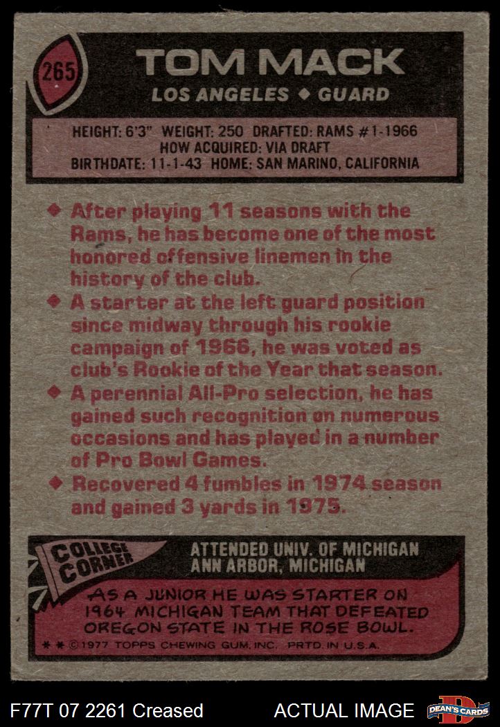 1977 Topps #265 Tom Mack