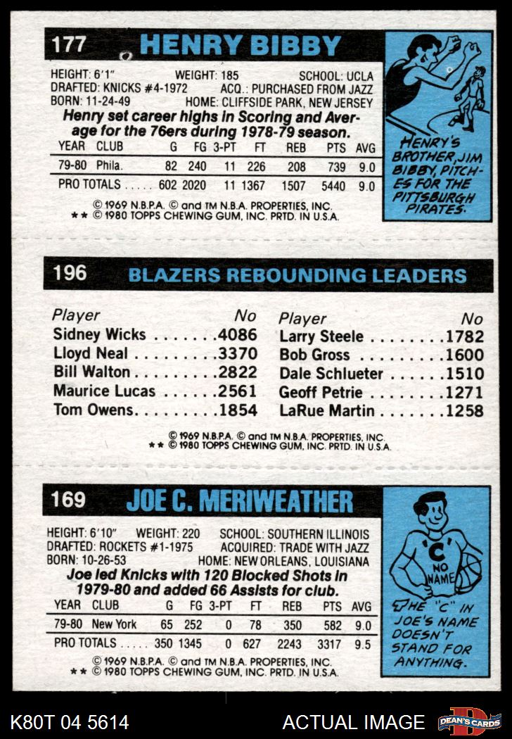 1980 Topps - Joe Meriweather / Kermit Washington / Henry Bibby 169 / 196 / 177 3 - VG
