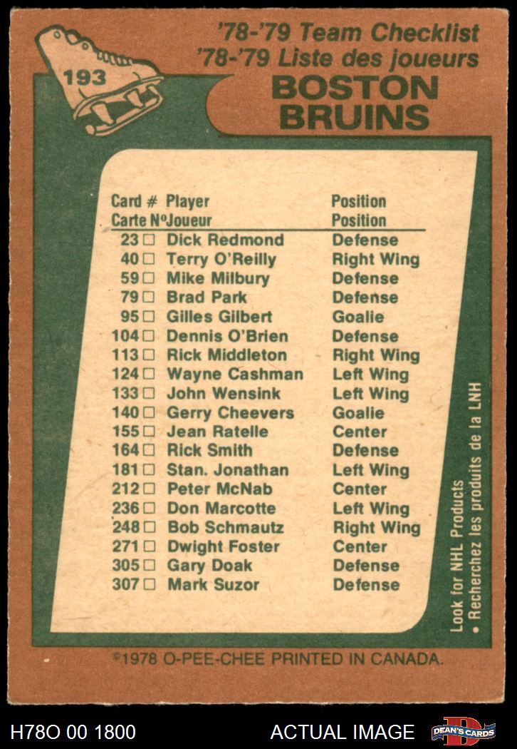 1978 O-Pee-Chee #193 Bruins Team