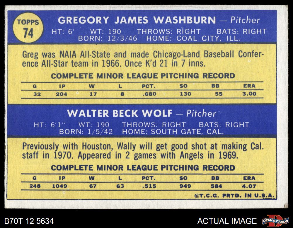 1970 Topps #74 - Greg Washburn / Wally Wolf Angels Rookies 5 - EX