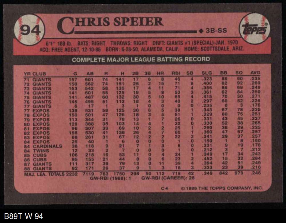 1989 Topps #94 Chris Speier