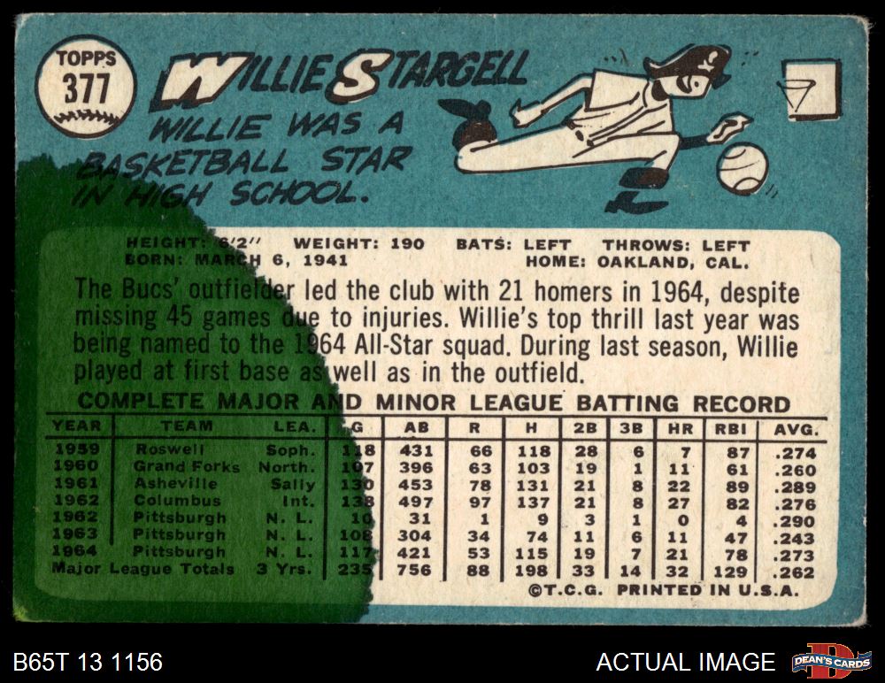 1965 Topps #377 Willie Stargell AUTHENTIC
