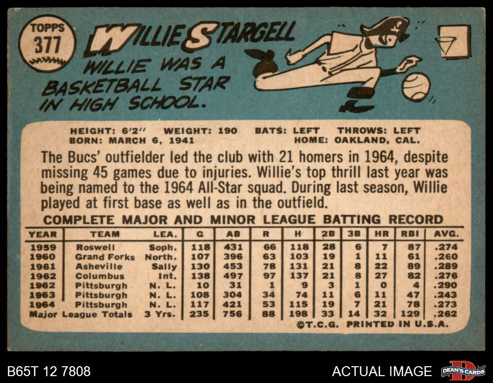 1965 Topps #377 Willie Stargell