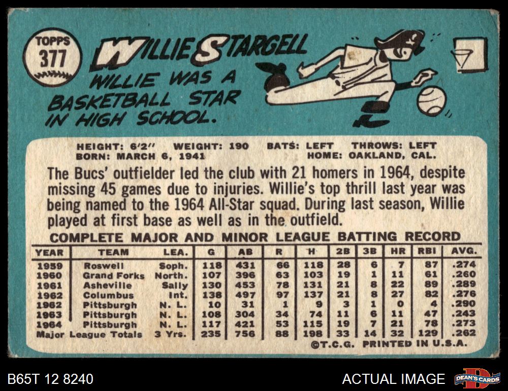 1965 Topps #377 Willie Stargell 2 - GOOD