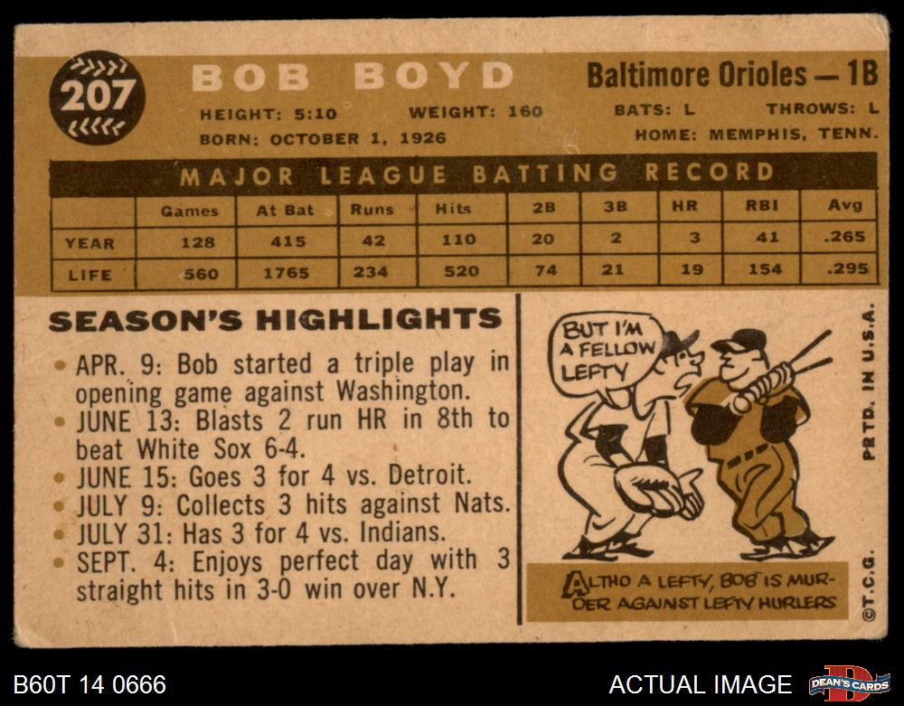 1960 Topps #207 Bob Boyd 1.5 - FAIR