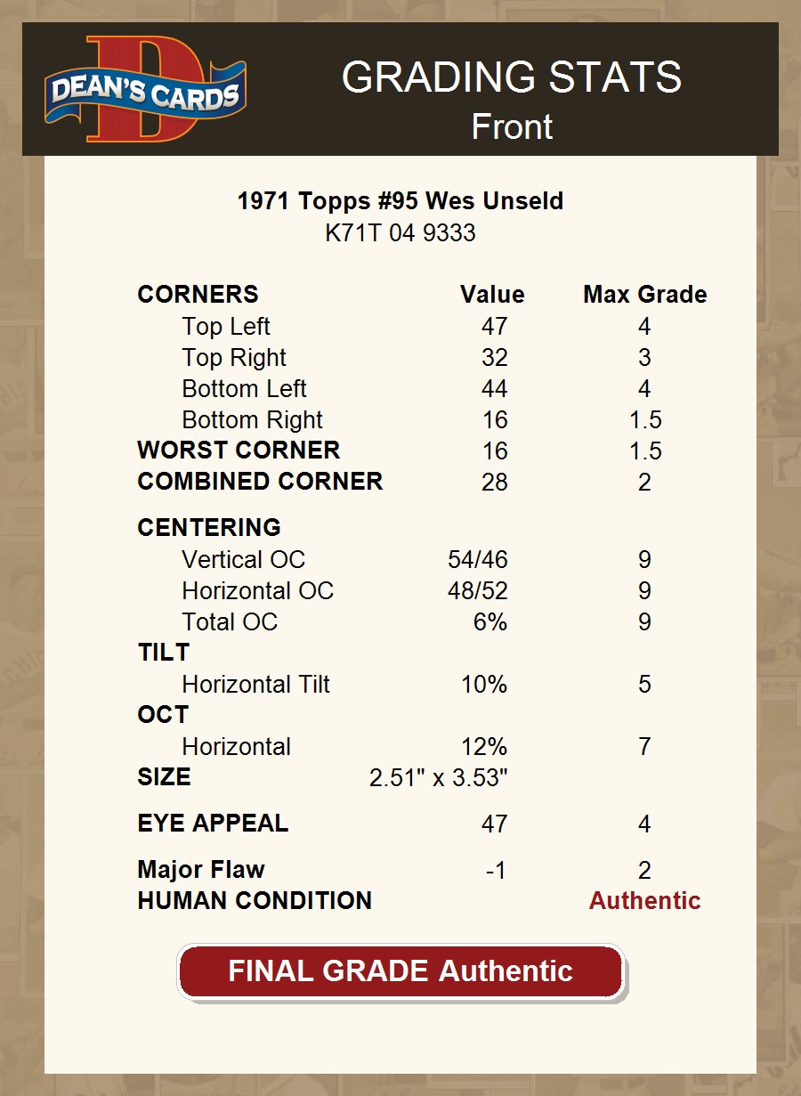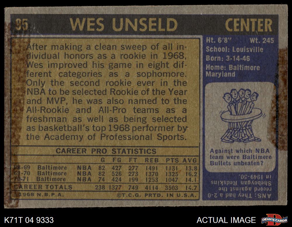 1971 Topps #95 Wes Unseld AUTHENTIC