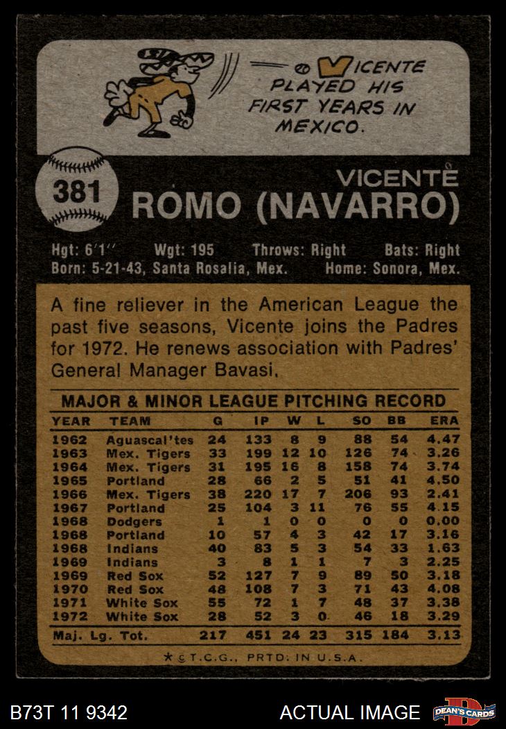 1973 Topps #381 Vicente Romo 3 - VG