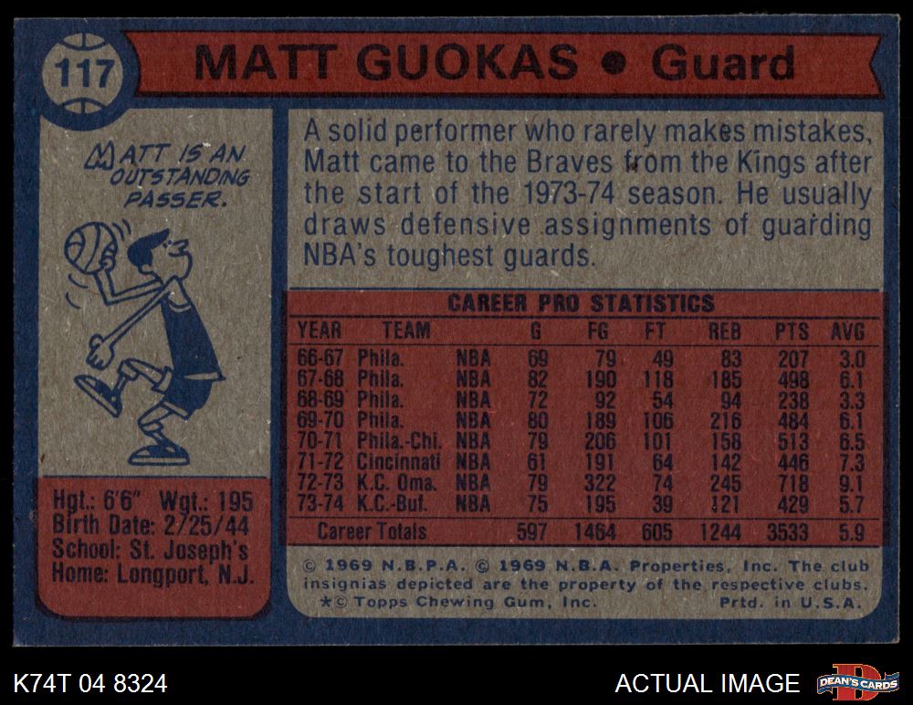 1974 Topps #117 Matt Guokas