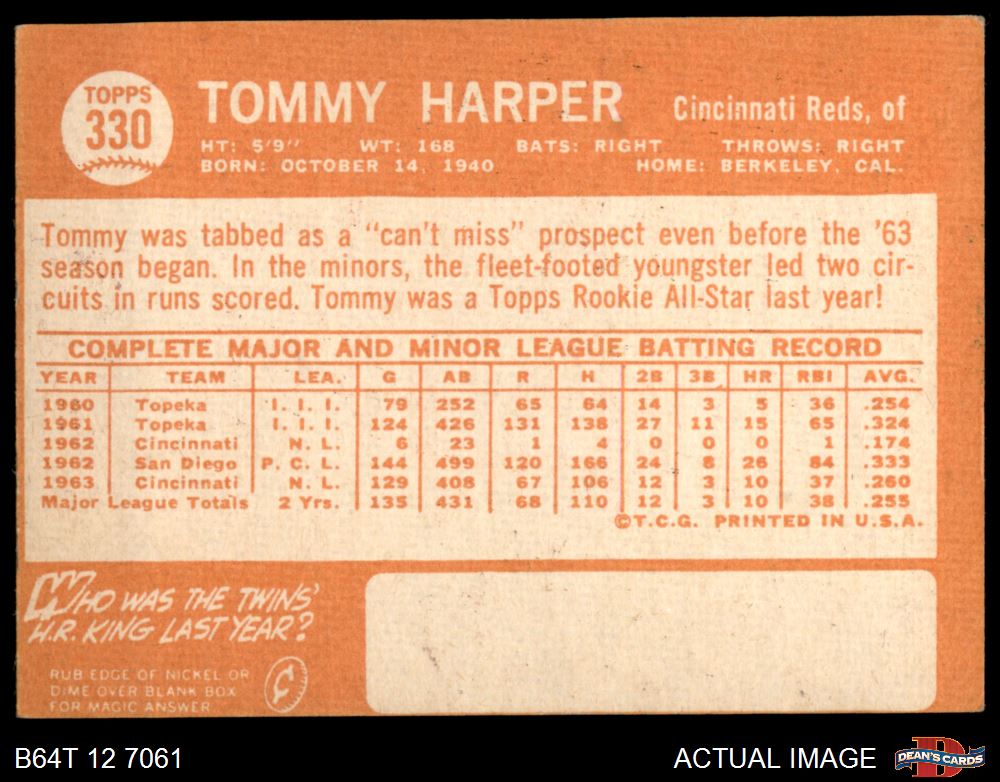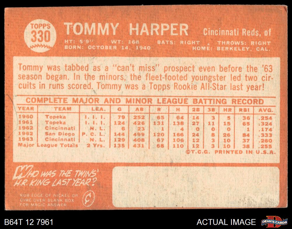 1964 Topps #330 Tommy Harper