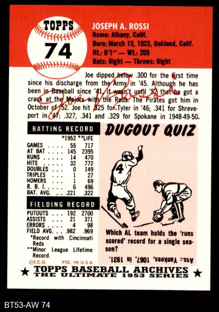 1953 Topps Archives #74 Joe Rossi 8 - NM/MT