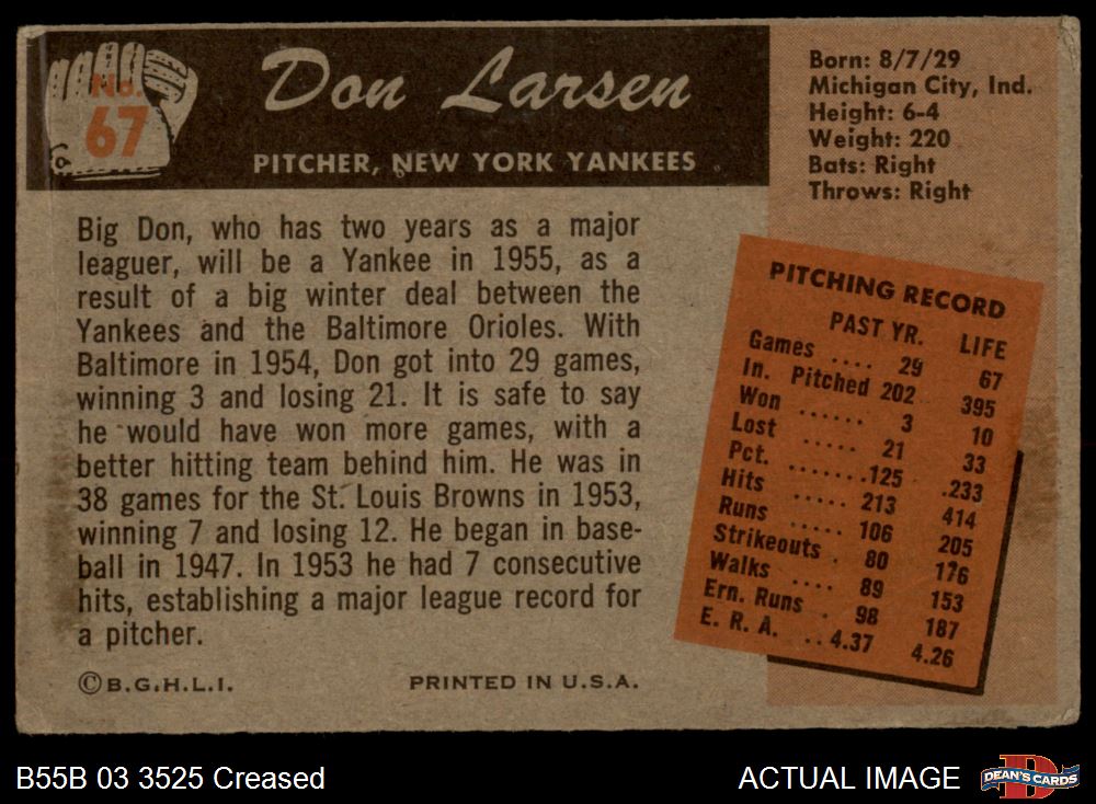1955 Bowman #67 Don Larsen