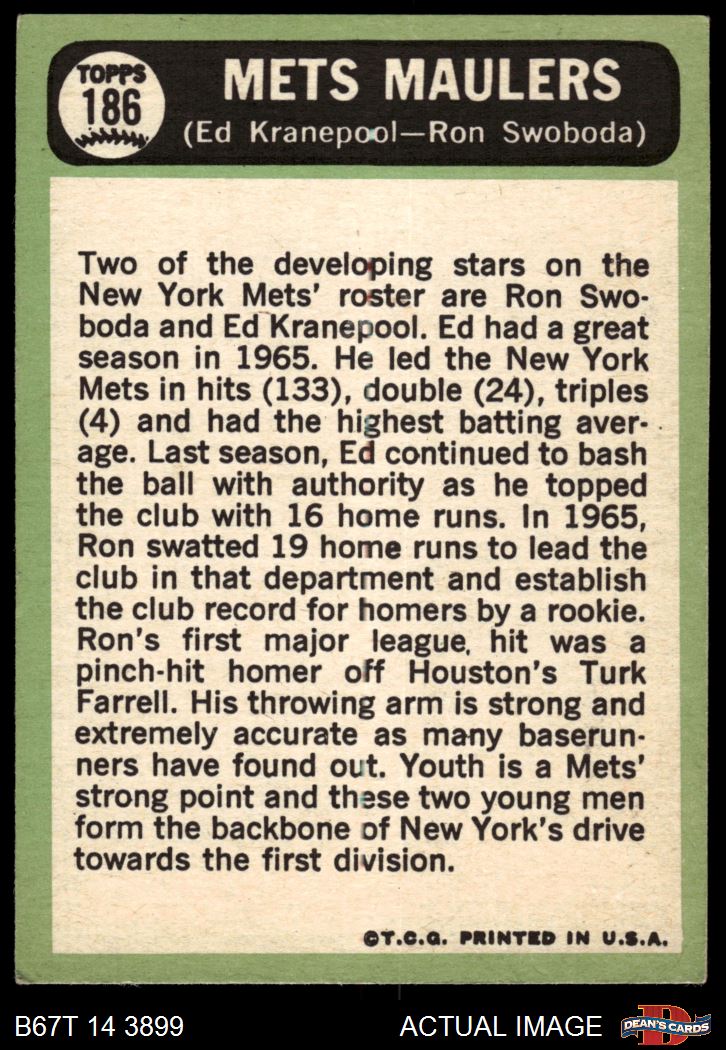 1967 Topps #186 - Ed Kranepool / Ron Swoboda Mets Maulers 4 - VG/EX