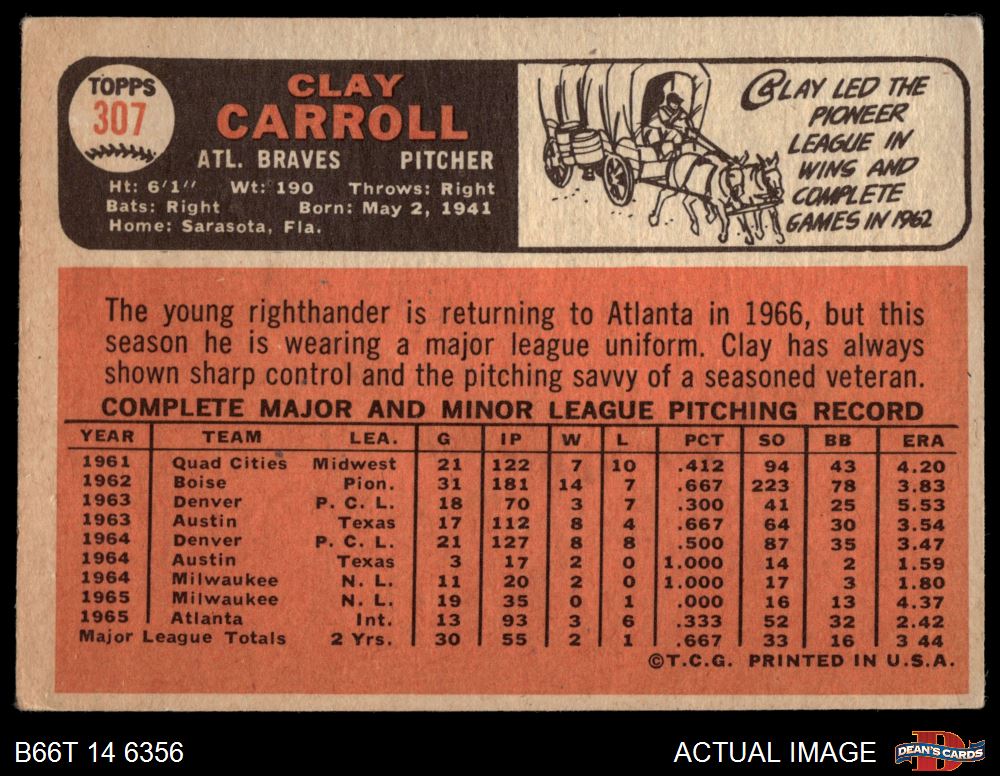 1966 Topps #307 Clay Carroll Front Thumbnail