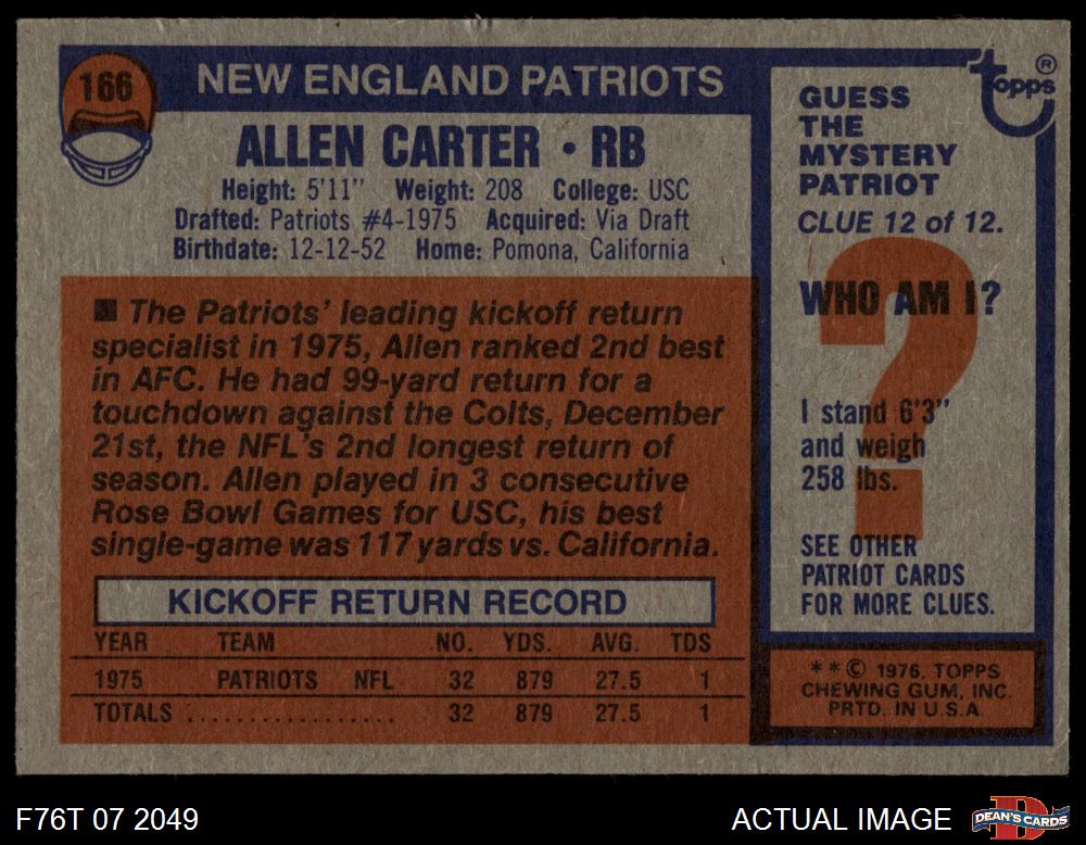 1976 Topps #166 Allen Carter