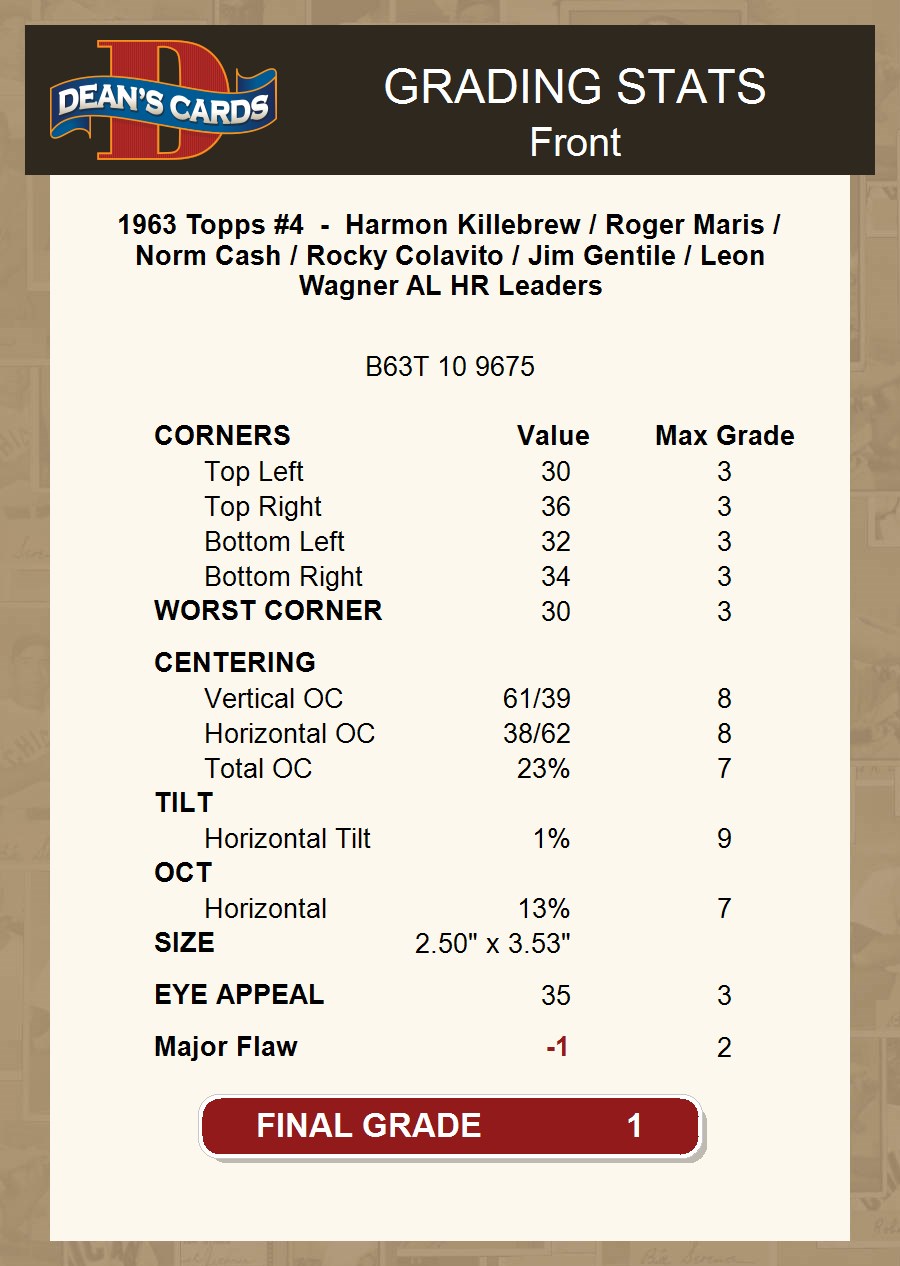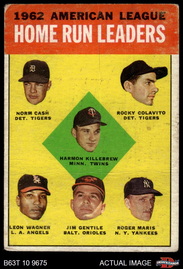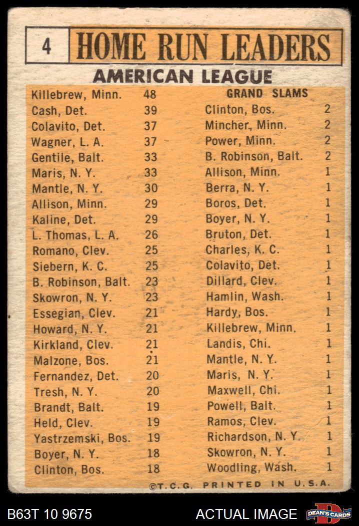 1963 Topps #4 - Harmon Killebrew / Roger Maris / Norm Cash / Rocky Colavito / Jim Gentile / Leon Wagner AL HR Leaders 1 - POOR