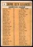 1963 Topps #4  -  Harmon Killebrew / Roger Maris / Norm Cash / Rocky Colavito / Jim Gentile / Leon Wagner AL HR Leaders Front Thumbnail
